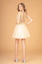 If you are looking for a cute dress to wear for special events, look no further. This glitter and sequin embellished babydoll short dress features V-neckline and open sheer V-back. Delicate floral appliques are decorated on bodice to create a 3D effect, and mesh fabric adds airy feeling to your look.