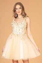 Sequin Floral Applique V-Back Glitter Mesh Homecoming Dress Sweetheart Neckline GLGS1999