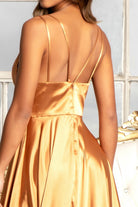 V-Neck Spaghetti Strap A-Line Satin Long Dress GLGL1991